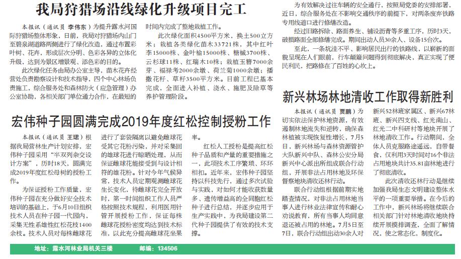 吉林森工露水河林業(yè)有限公司第一門(mén)戶(hù) 主管:露水河林業(yè)有限公司黨委宣傳部 辦公地址:吉林省白山市撫松縣露水河鎮(zhèn) 備案/許可證編號(hào):吉ICP備14005835號(hào) 電話傳真:0439-5069460 聯(lián)系電話:0439-5069077 投稿郵箱: lshlyb@126.com 不良信息舉報(bào):0439-5069315;0439-5069077 |