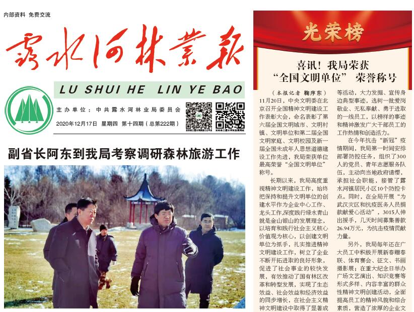 吉林森工露水河林業(yè)有限公司第一門戶               主管:露水河林業(yè)有限公司黨委宣傳部